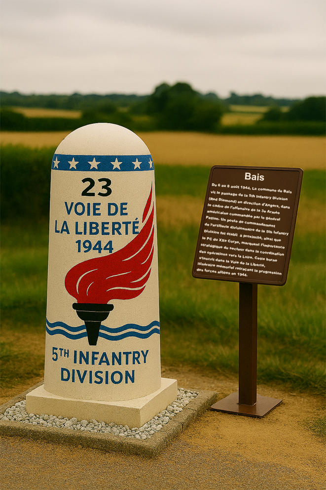 L’année 2024 a marqué le 80ème anniversaire de la libération. En Ille-et-Vilaine, une borne « Voie de la 2ème DB » a été inaugurée à Domalain le 17 septembre 2012, confirmant la présence de la division dans la région.