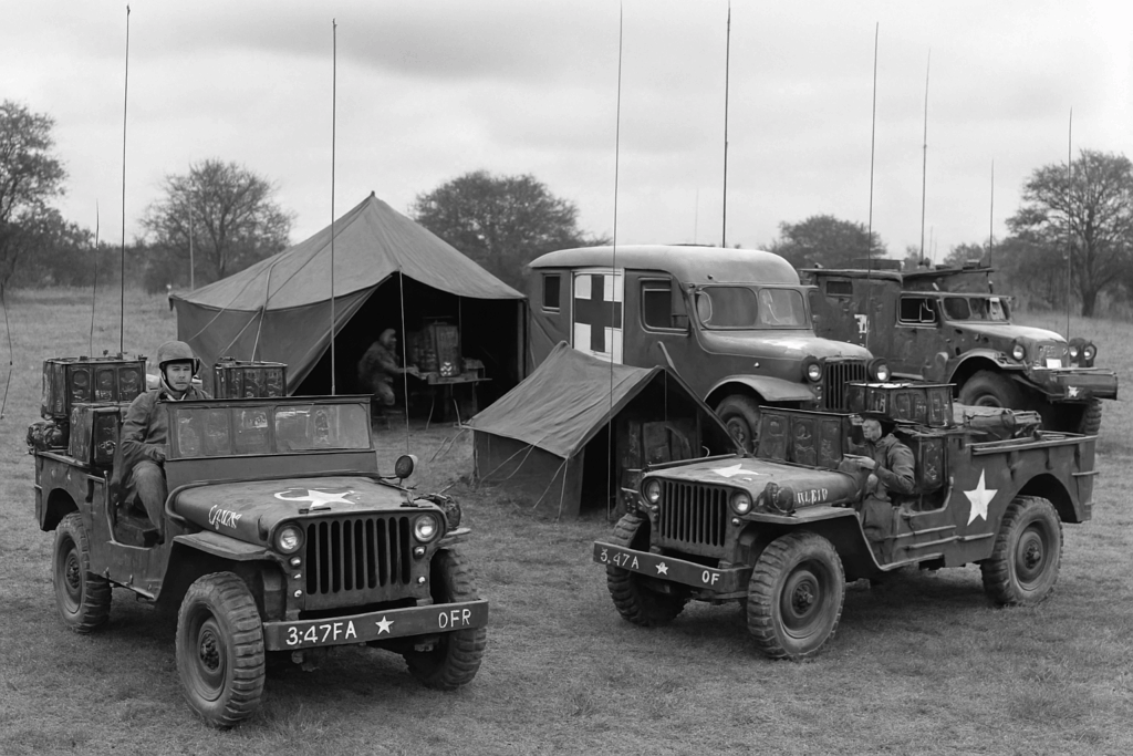 | Jeep Willys MB | ~30 | Liaison, commandement, reconnaissance |