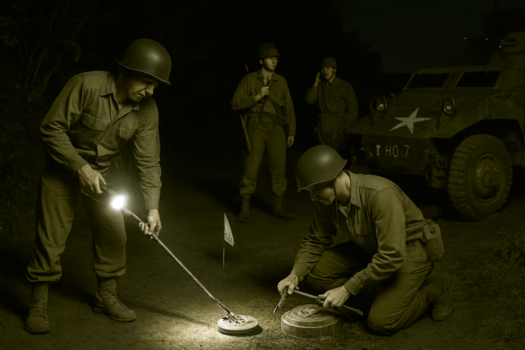 Lors de leur progression vers Angers, la 5th troupe de reconnaissance mécanisée (Mecz) a subi ses premières pertes. Une section de maintenance et d’approvisionnement du quartier général semblait avoir pris de l’avance sur le reste du 5th Cavalry, empruntant une route plus au nord — probablement une trajectoire moins sûre. Il est à noter que, dans le cadre de leurs différentes patrouilles, certains éléments ont suivi des itinéraires variés pour atteindre Angers.