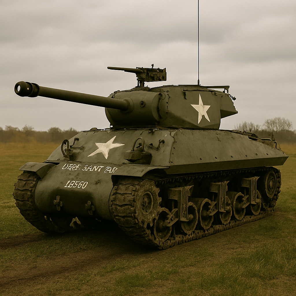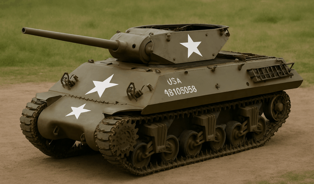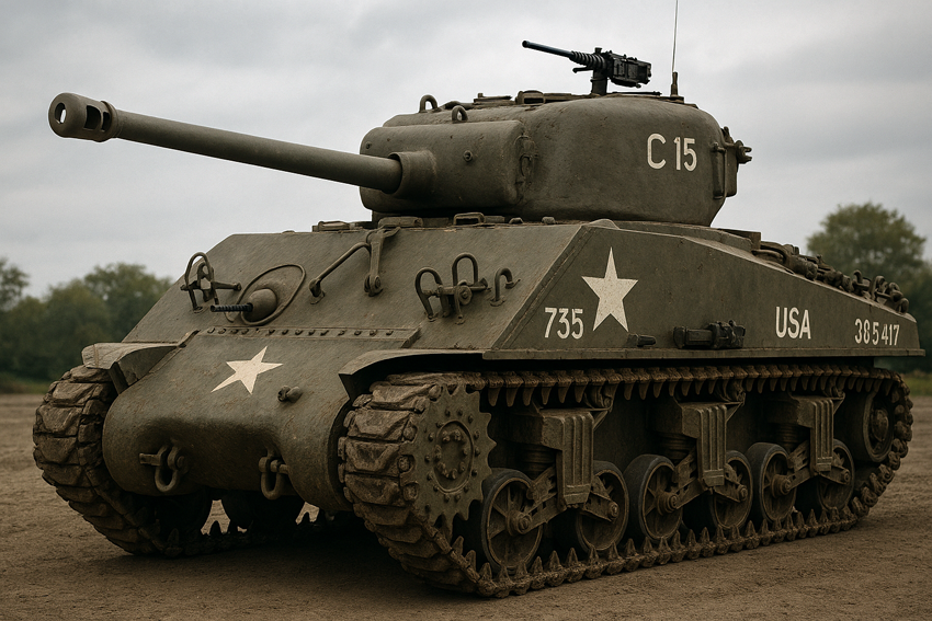 Un M4 Sherman 75 mm du 735th Tank Battalion. Image générée par IA via Microsoft Copilot.