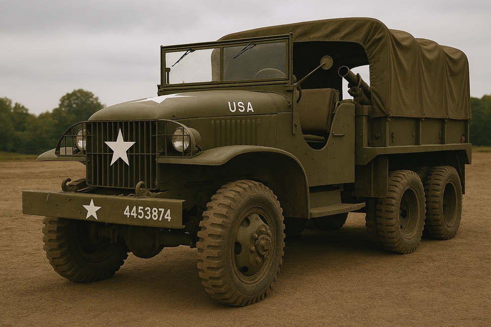 Un camion militaire GMC CCKW 2½ tonnes, surnommé « Jimmy ». Image générée par IA via Microsoft Copilot.
