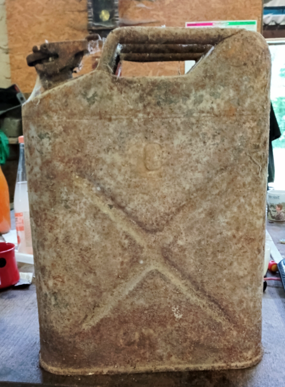 Les deux jerrican étant dans leur jus, il est noté dessus Q.M.C. et au dos USA. Marquages, fabricant Q.M.C. (Quarter Master Corps)